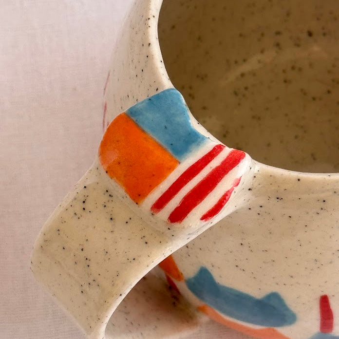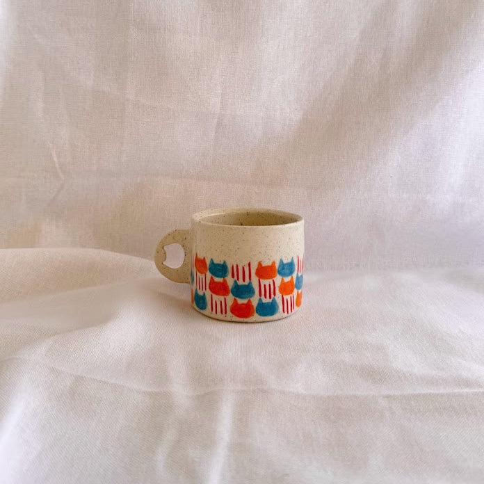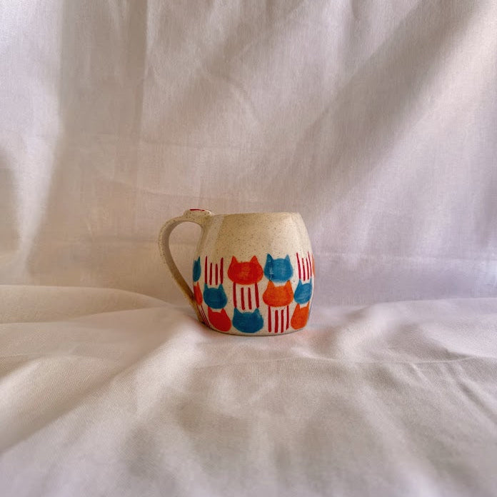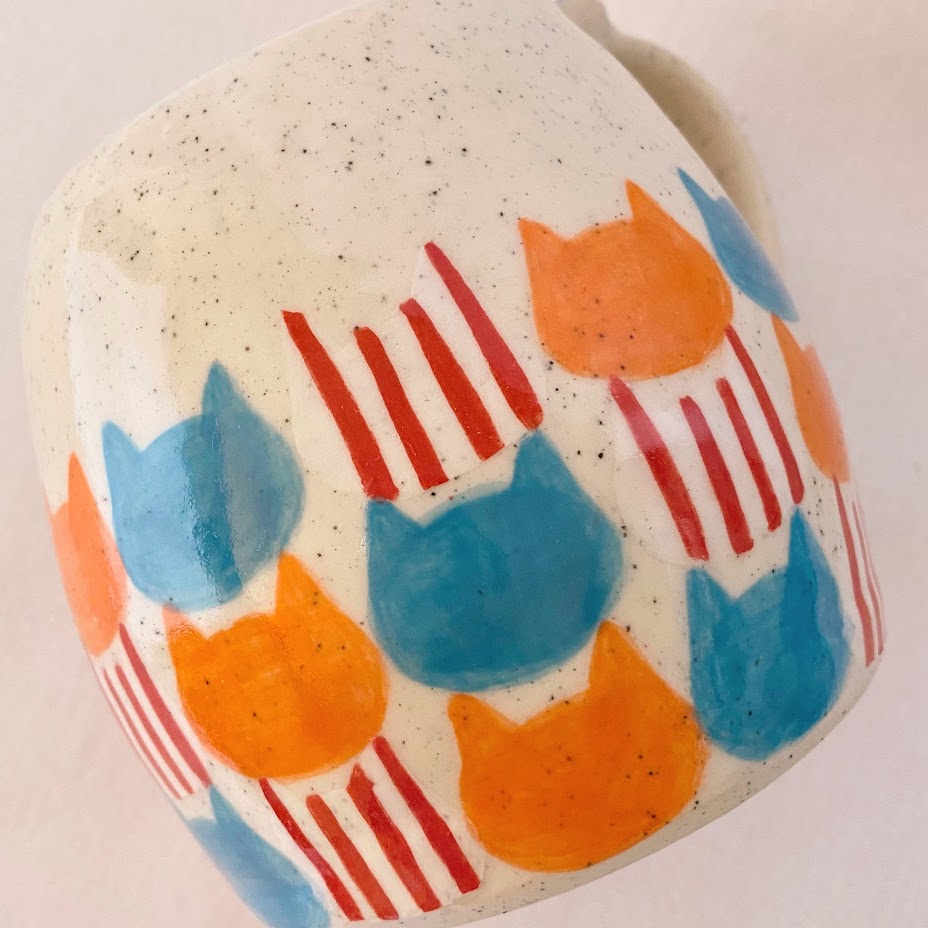 Handmade and hand-painted checkered cat pattern on Stoneware clay.