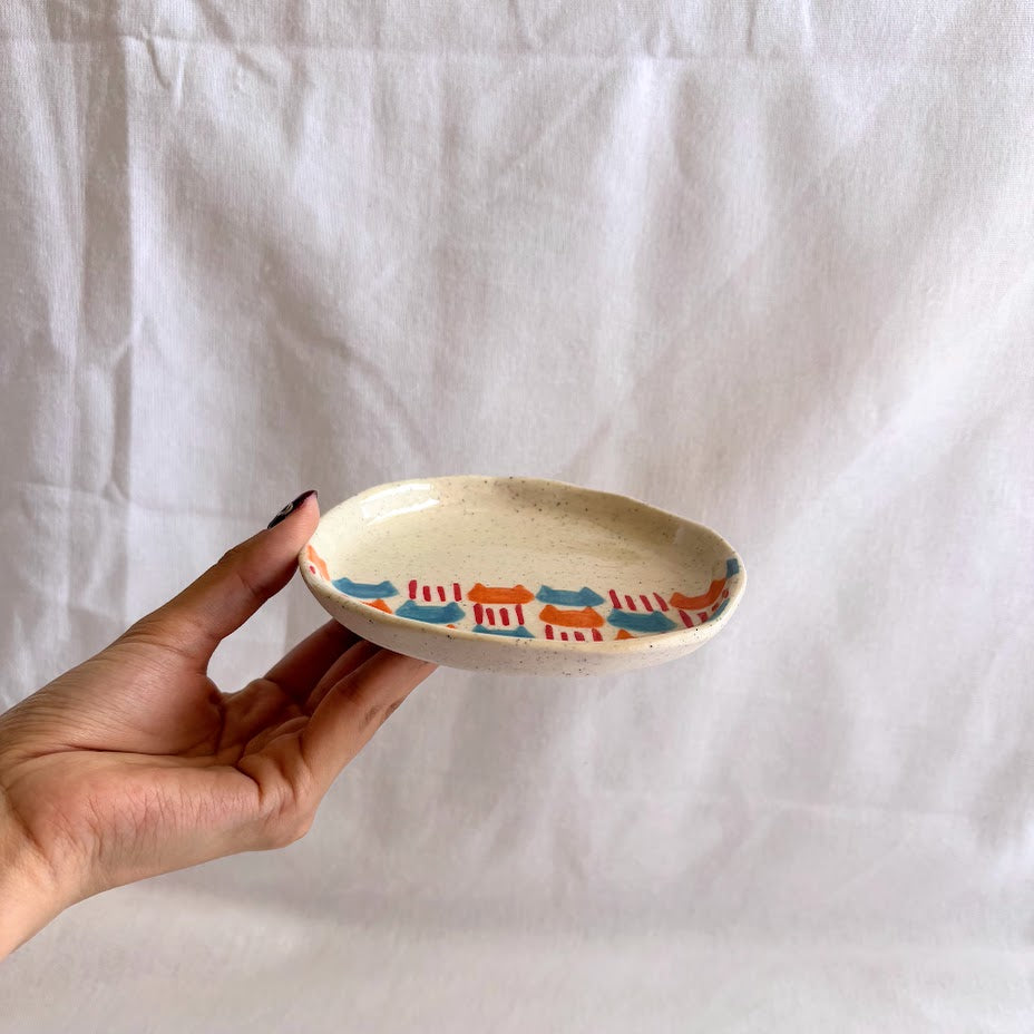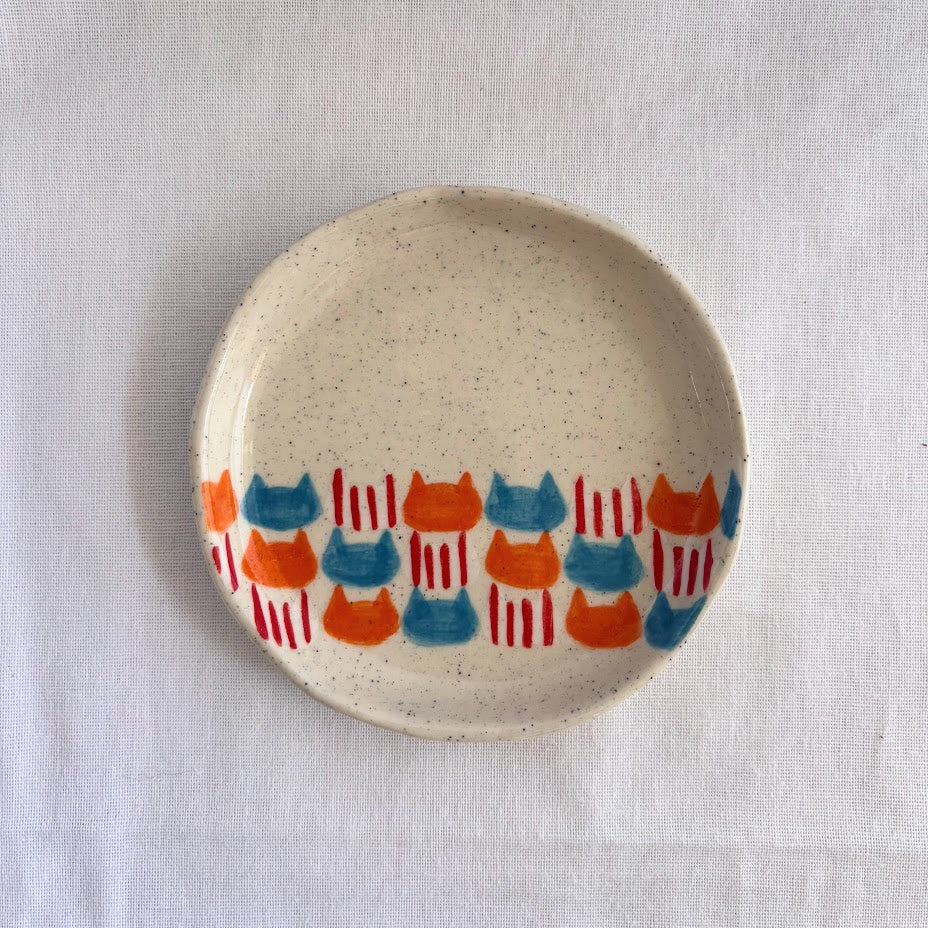 Handmade and hand-painted checkered cat pattern on Stoneware clay.