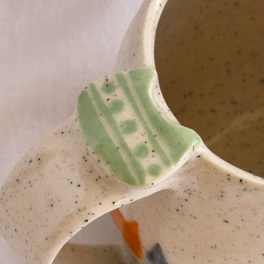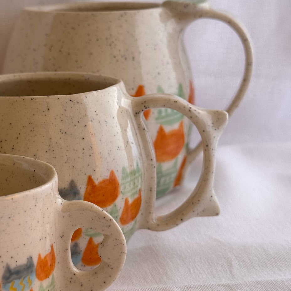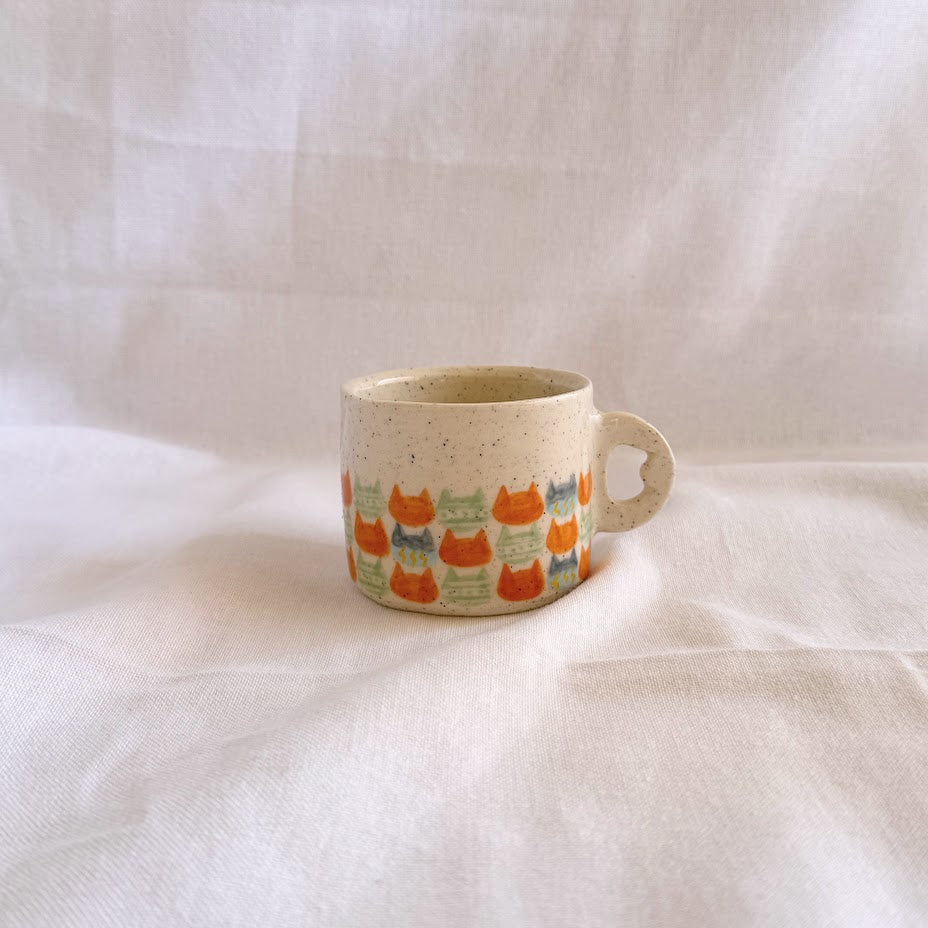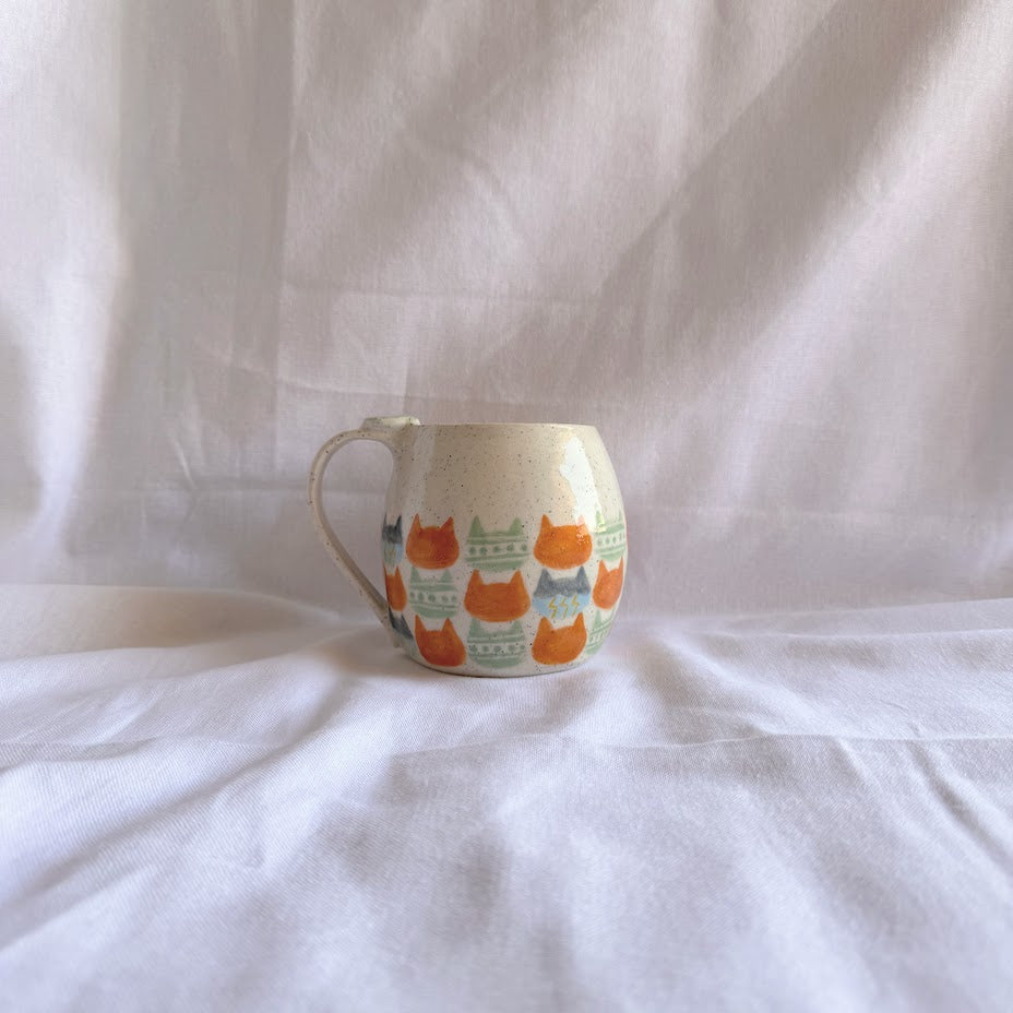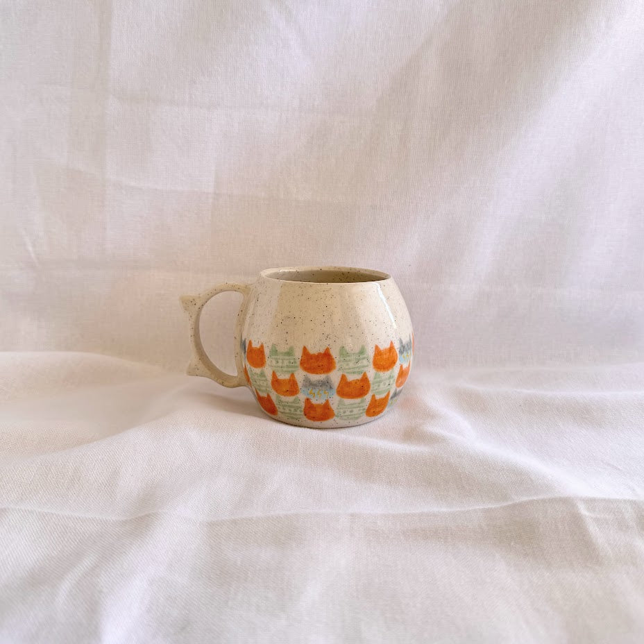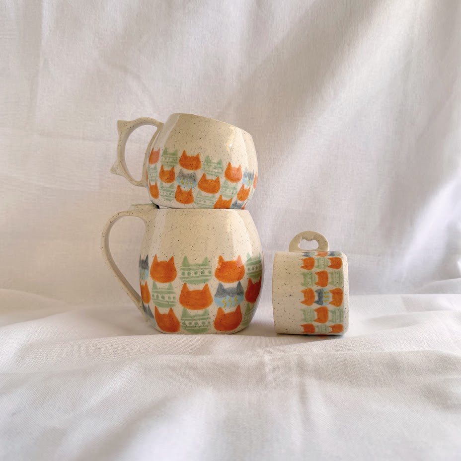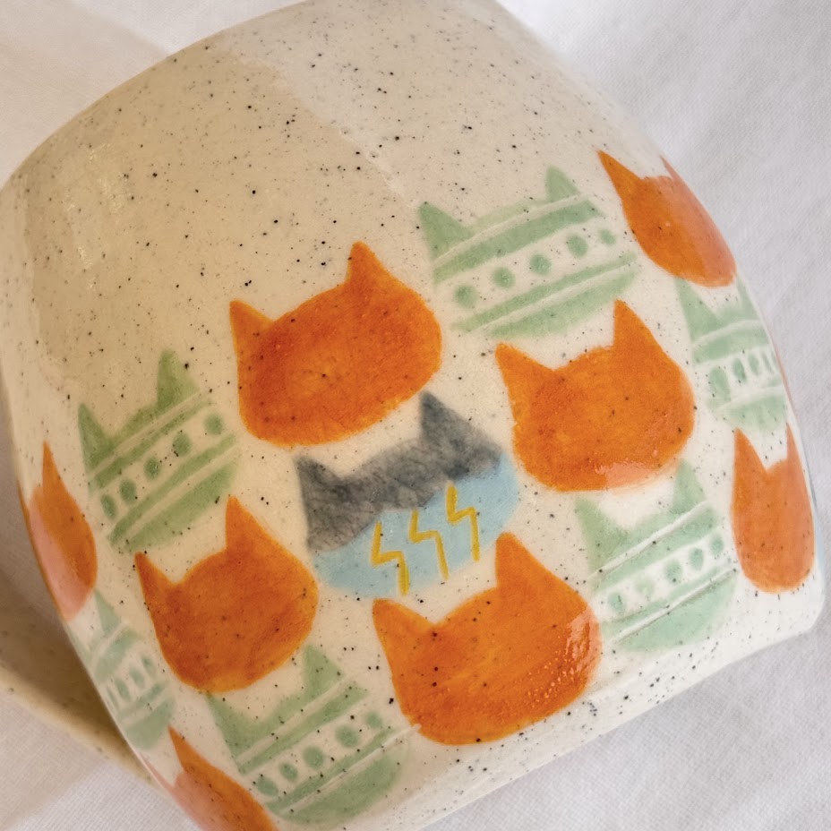 Handmade and hand-painted checkered cat pattern on Stoneware clay.