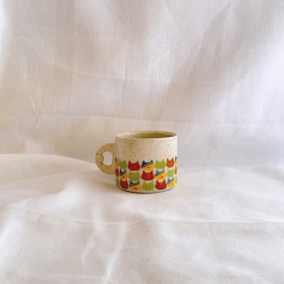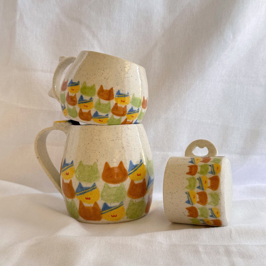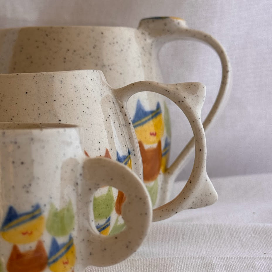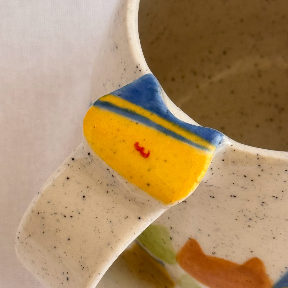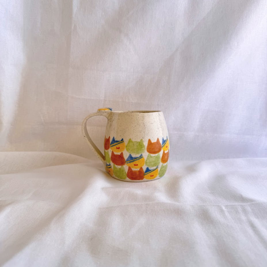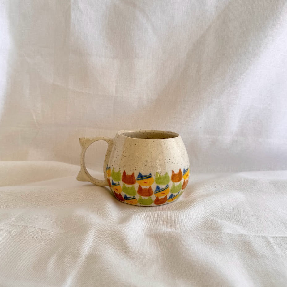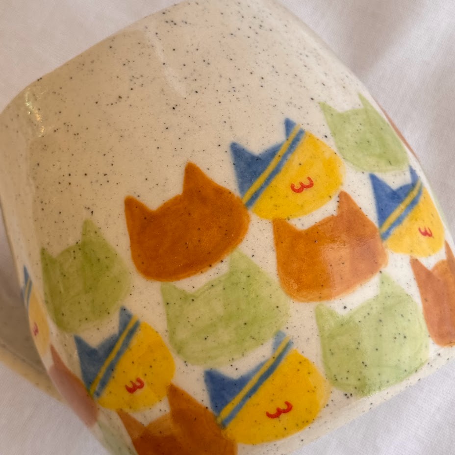 Handmade and hand-painted checkered cat pattern on Stoneware clay.