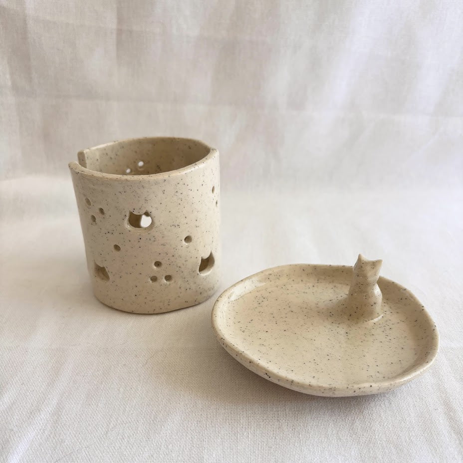 Perfect for illuminating tea light candles or for burning essential oils. The detachable top plate can also be used as a trinket tray!